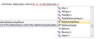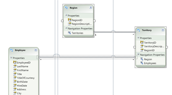 (Note that EntityFramework does not show the EmployeeTerritory crosswalk table)