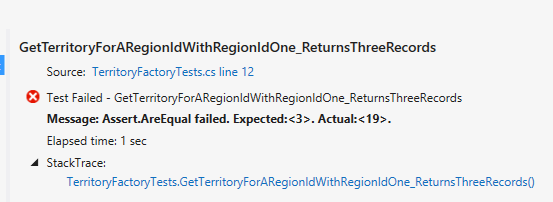 public void GetTerritoryForARegionIdWithRegionIdOne_ReturnsThreeRecords()