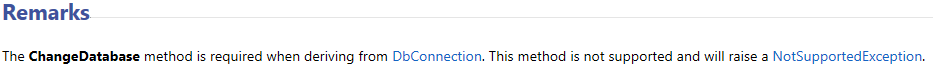When I checked out intellisense on the ChangeDatabase method, there was nothing to indicate anything unusual.