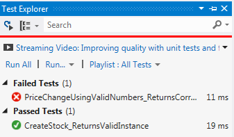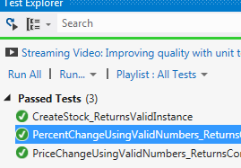 I then added some unit tests to verify that I could create the Stock class and that I could assign the Symbol property: