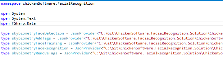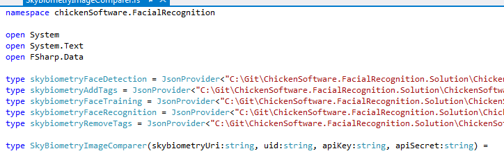 Sky Biometry uses both Json and Xml for API calls. They also have an example covering library in C#. I decided to use F# and use the json type provider to explore their api and the quality of their recognition algorithms. They have a good documentation page and it didn’t take very long to get my account up and running and then making API calls.