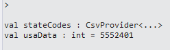 let stateCodes = stateCodeContext.Load("https://portalvhdspgzl51prtcpfj.blob.core.windows.net/censuschicken/states.csv"); let usaData = stateCodes.Rows |> Seq.collect(fun r -> censusDataContext.Load(System.String.Format("https://portalvhdspgzl51prtcpfj.blob.core.windows.net/censuschicken/{0}.TXT",r.Abbreviation)).Rows) |> Seq.length