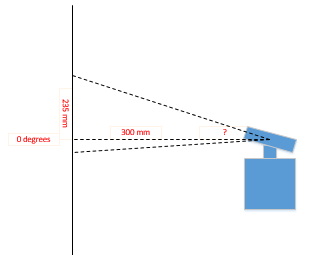 The tilt was more of a challenge. We needed a way of measuring the total range along the Y axis. To that end, we placed the turret 300 millimeters away from the wall. We then placed a laser pointer on the turret and put a level on it to ensure that it was a 0 degrees and marked the wall. We then moved the turret to its highest position and then to its lowest, marking the wall with those points. We then measured the distance to the highest and lowest point on the wall.