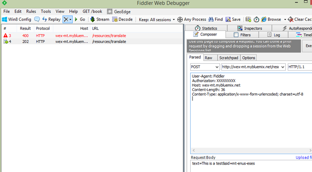 1 #r @"C:\Program Files (x86)\Reference Assemblies\Microsoft\Framework\.NETFramework\v4.5\System.Net.Http.dll" 2 #r @"..\packages\Microsoft.AspNet.WebApi.Client.5.2.2\lib\net45\System.Net.Http.Formatting.dll" 3 4 open System 5 open System.Net.Http 6 open System.Net.Http.Headers 7 open System.Net.Http.Formatting 8 open System.Collections.Generic 9 10 11 let serviceName = "machine_translation" 12 let baseUrl = "http://wex-mt.mybluemix.net/resources/translate" 13 let userName = "youNameHere@aol.com" 14 let password = "yourPasswordHere" 15 let authKey = userName + ":" + password 16 17 let client = new HttpClient() 18 client.DefaultRequestHeaders.Authorization <- new AuthenticationHeaderValue("Basic",authKey) 19 20 let input = new Dictionary<string,string>() 21 input.Add("text","This is a test") 22 input.Add("sid","mt-enus-eses") 23 let content = new FormUrlEncodedContent(input) 24 25 let result = client.PostAsync(baseUrl,content).Result 26 let resultContent = result.Content.ReadAsStringAsync().Result