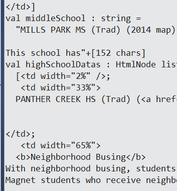 11 let middleSchoolDatas = schoolRows.[1].Descendants("TD") |> Seq.toList