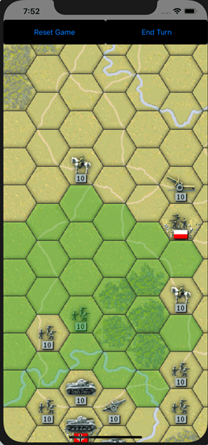 Once I had the units set up, I followed a similar exercise for Terrain. The real fun for me came to the next module – the series of functions to calculate movement of a unit across terrain. Each tile has a movement cost that is calculated based on the kind of equipment and the condition of a tile (tanks move slower over muddy ground)