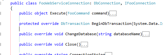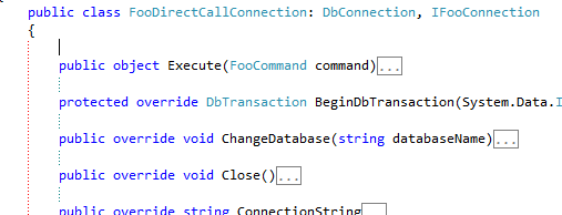 It now complies and I removed the duplicative code. The sub-lesson here is that, as rule, don’t start with an abstract class. Start with implementations and if there is lots of repetitive code, the consider refactoring to an abstract class. Your covering unit tests will tell you if your refactor is wrong and you are using unit tests, aren’t you?