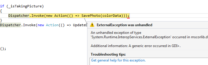 I then added some code to handle all of the events that the Phidgets and Kinect are sending to the UI and do something useful with it. For example, the light sensor change fills in the appropriate box on the screen (note that Phidgets use a different thread so you need to use Dispatcher.Invoke)