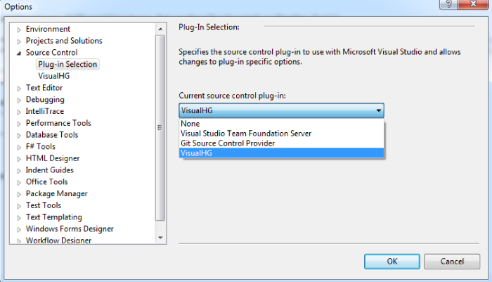 My first step was create an account on bitbucket. The reason I chose bitbucket over github was because bitbucket allows for private repros. Also, I wanted to try out Mercurial. I installed the most recent version on my machine and then added the VisualHG extension to Visual Studio 2010. Note that you have to change your source control plug in Visual Studio (Tools –> Source Control)