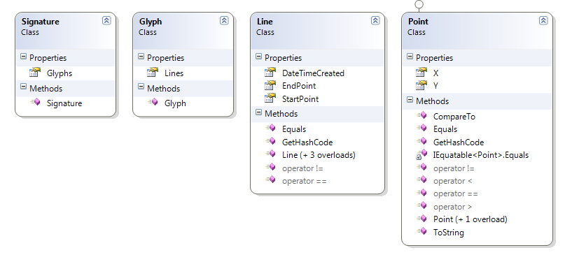 Pretty cool. Next steps will be the adjust for slope and location on the canvas. Also, Rob Seder suggested that the Line should include a DateTime stamp, because the meter/pace of someone’s signature is also important. I’ll add that analysis in too – as well as a line comparison….