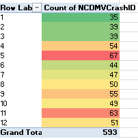 I went back to my Road Alert project and I wanted to add modifiers to the geolocations to account for the seasonality of the alter types.  For example, there are 36% more crashes in May and 27% more crashes in November.
