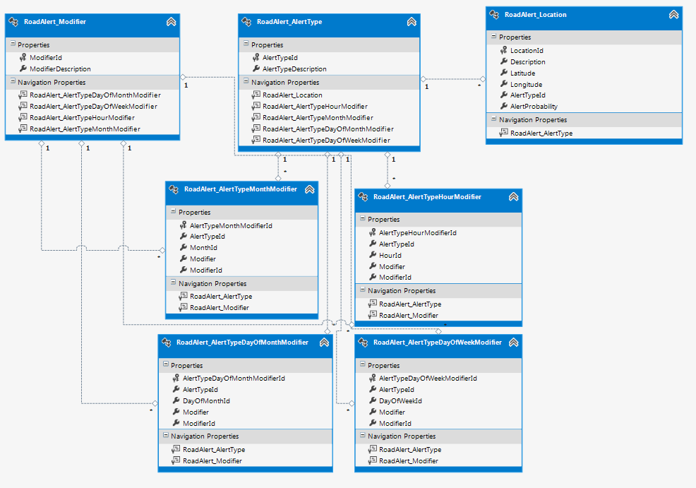 I then need to update my service interface to account for the new data.  I noticed that all of the tables all had the same format: PK (Int32), FKs(Int32), TableValueId(Int32), and ModifierValue(Float).  The only variation is the TableValue – in the Month table it is 1-12, in the DayOfWeek it is 0-6, DayOfMonth is 1-31 and Hour is 0-23)